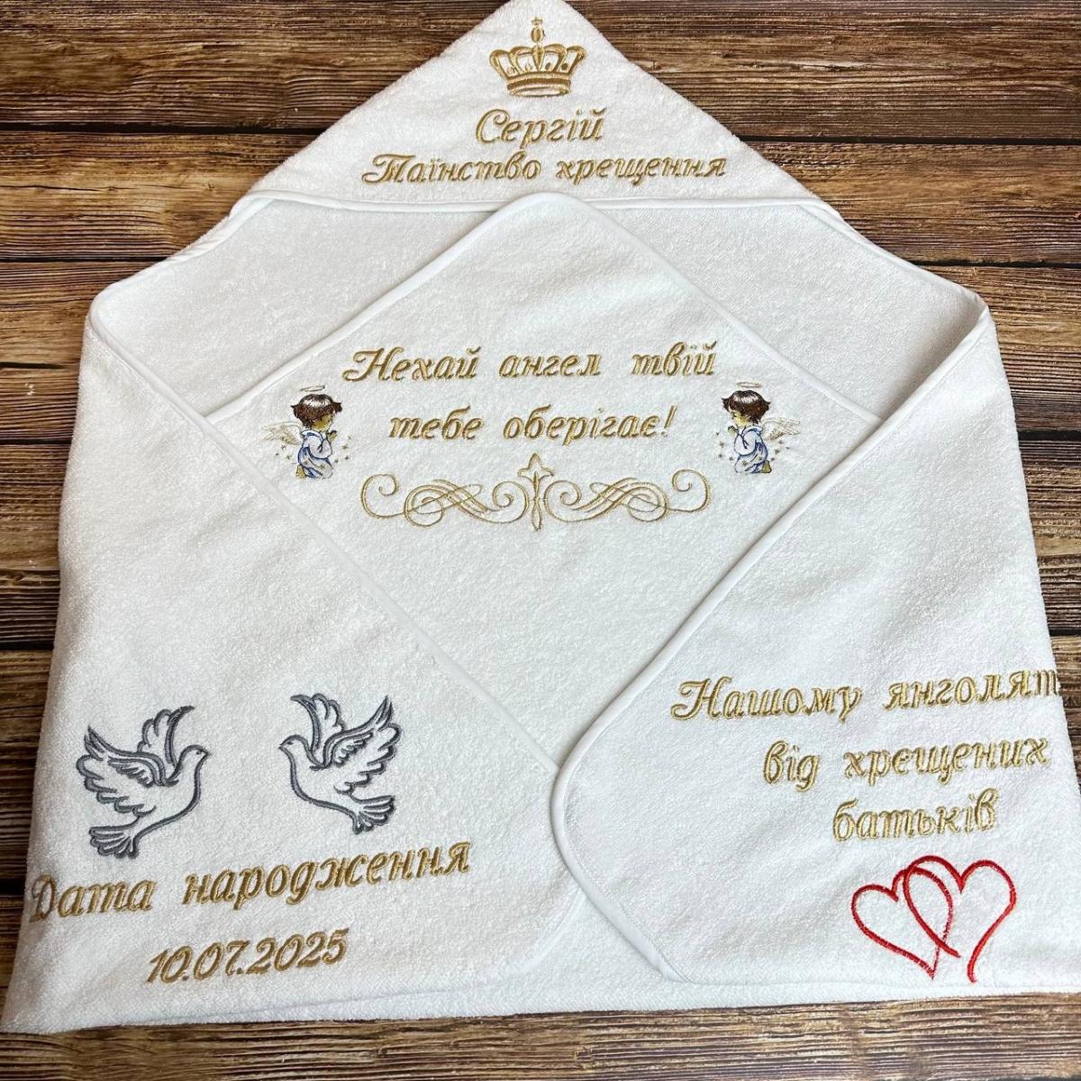 Ніжна та вишукана хрестильна крижма розміром 100×100 см — ідеальний вибір для особливого дня вашого малюка. Виготовлена з м’якого махрового полотна, вона має капюшончик із вишивкою, що додає зворушливості й практичності. Тканина дуже приємна на дотик, не подразнює ніжну шкіру дитини, чудово вбирає вологу та забезпечує комфорт після купелі. Висока якість матеріалу і вишивки гарантує, що крижма залишиться пам’ятною річчю на довгі роки.