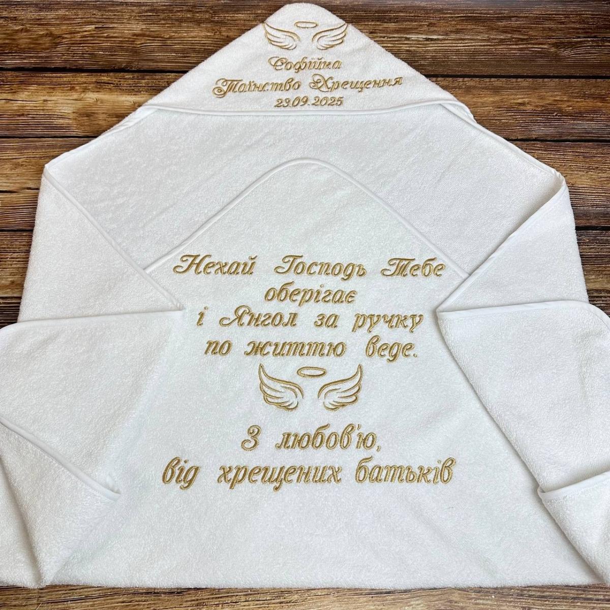 Крижма для хрещення "Від хрещених батьків", розмір 100*100 см, щільність 500 г/м2