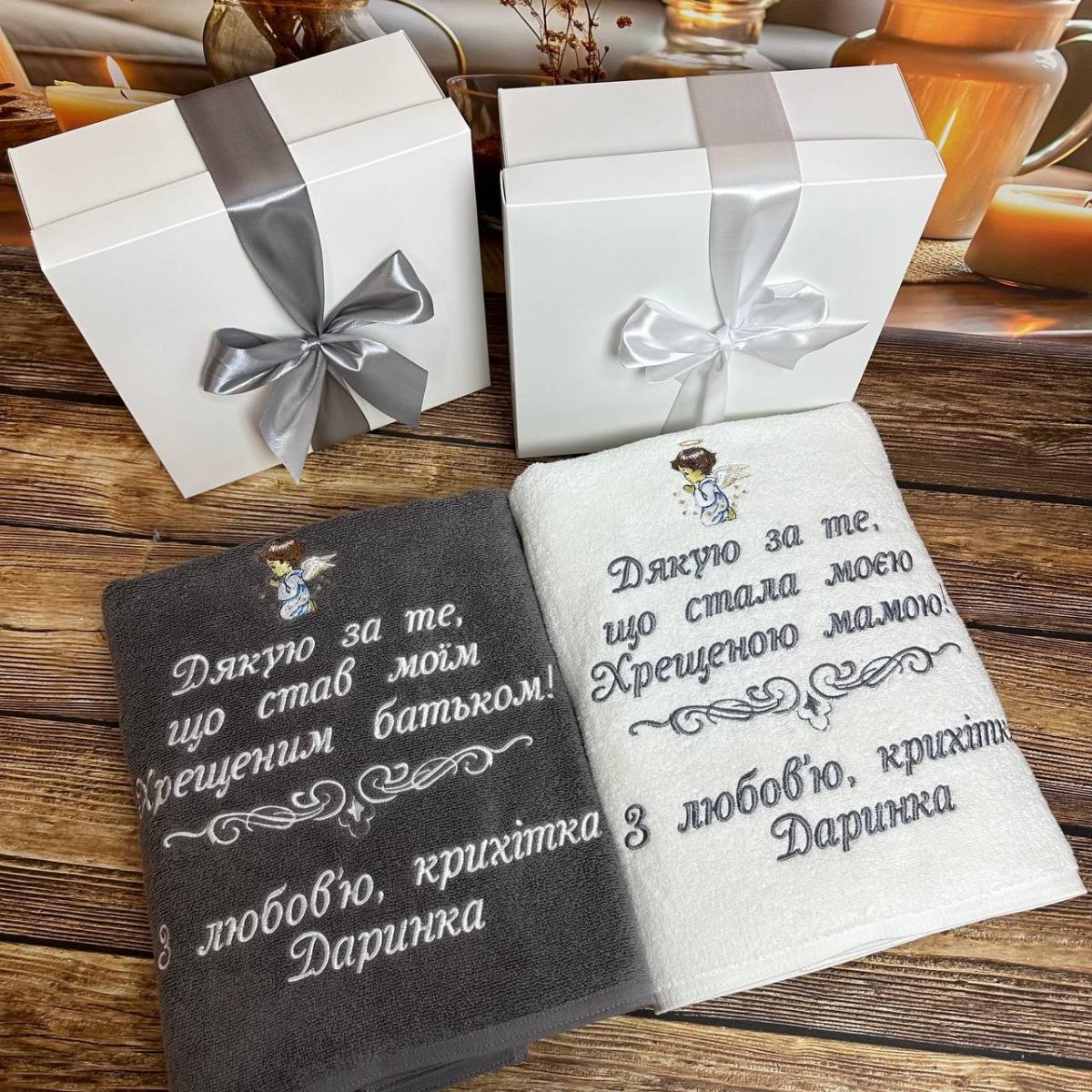 Рушник хрещеним батькам "З любов'ю від Даринки", розмір 70*140 см, щільність 400 г/м2