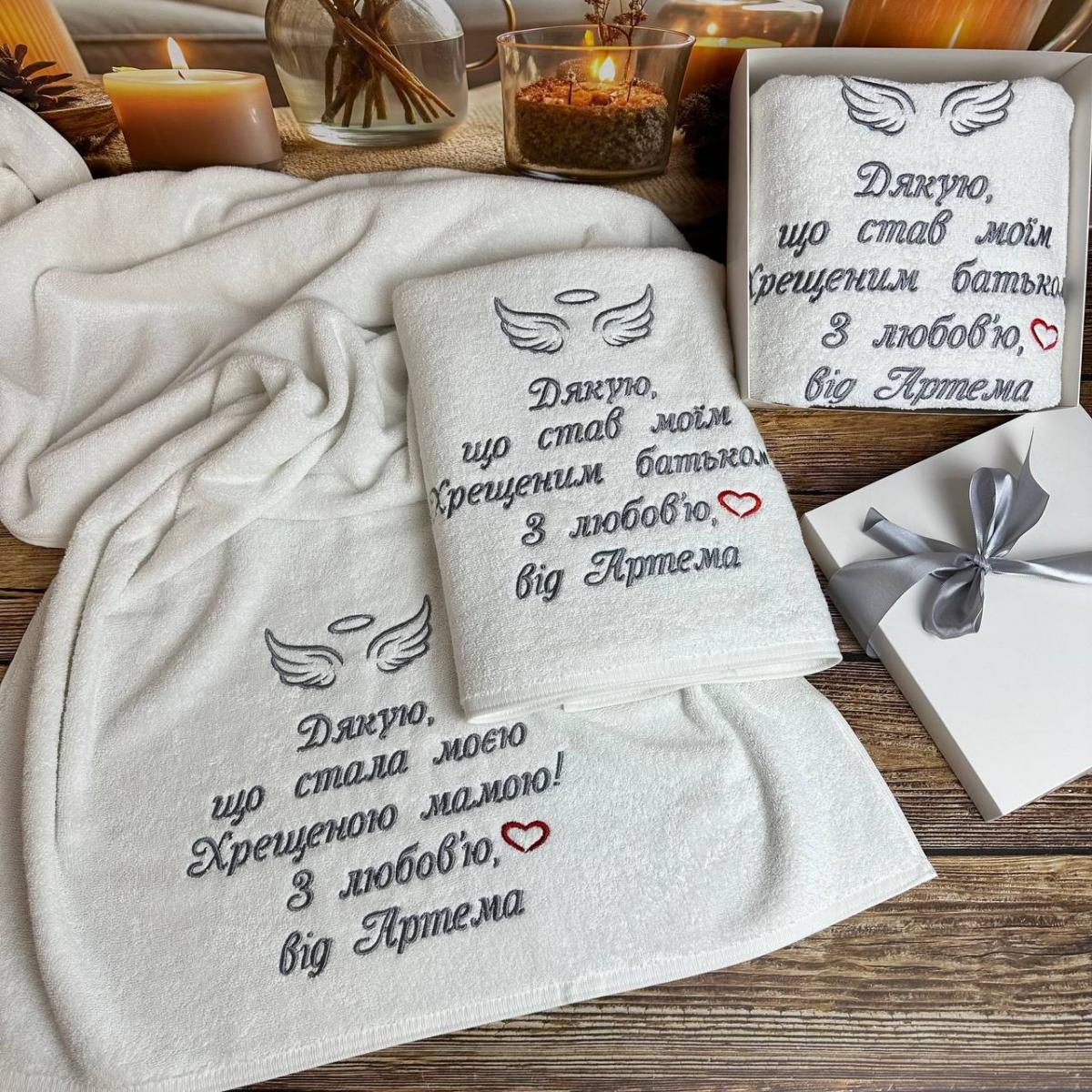 Рушник хрещеним "З любов'ю від Артема", розмір 70*140 см, щільність 500 г/м2