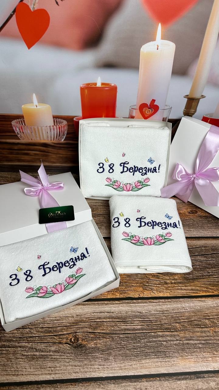 Рушник на 8 Березня, розмір 70*140 см, щільність 450 г/м2