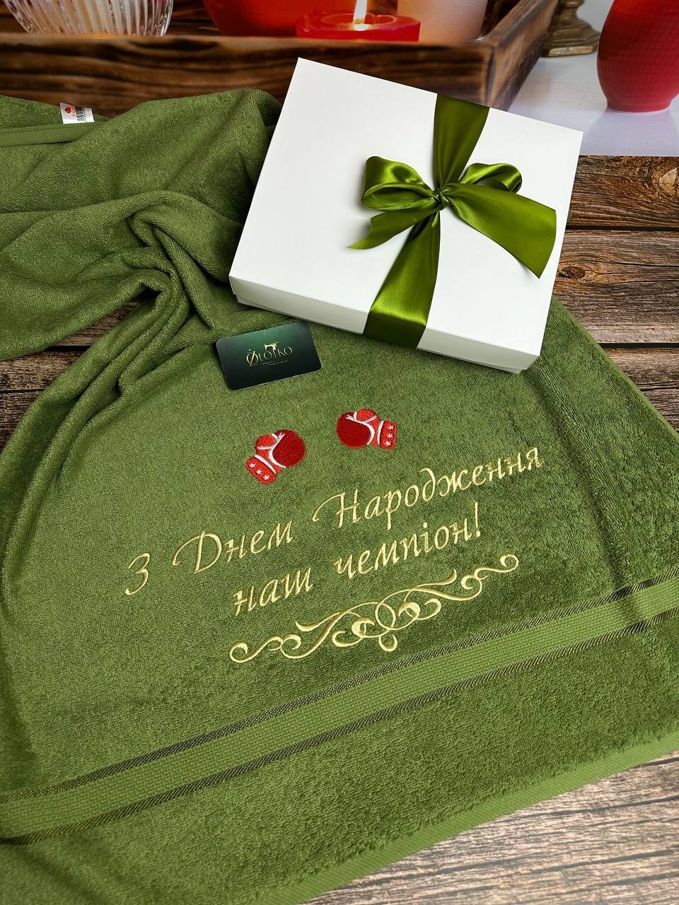 Рушник "Чемпіону" до дня народження - стильний та енергійний аксесуар з витонченою вишивкою, що символізує перемогу та святковий настрій. Яскраві кольори та вишуканий дизайн роблять його ідеальним подарунком для народження справжнього чемпіона.