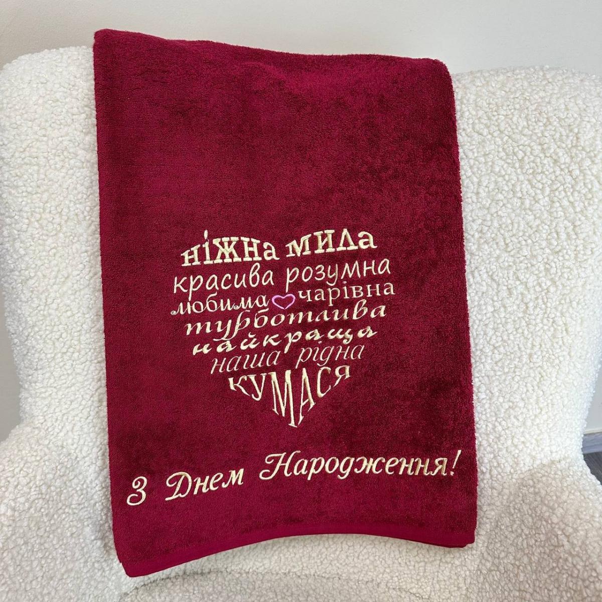 Рушник з душевним побажанням! Ніжна вишивка, що несе тепло, турботу й найщиріші слова - справжній оберіг для дому і серця. Зворушливий і дуже особистий подарунок до дня народження!