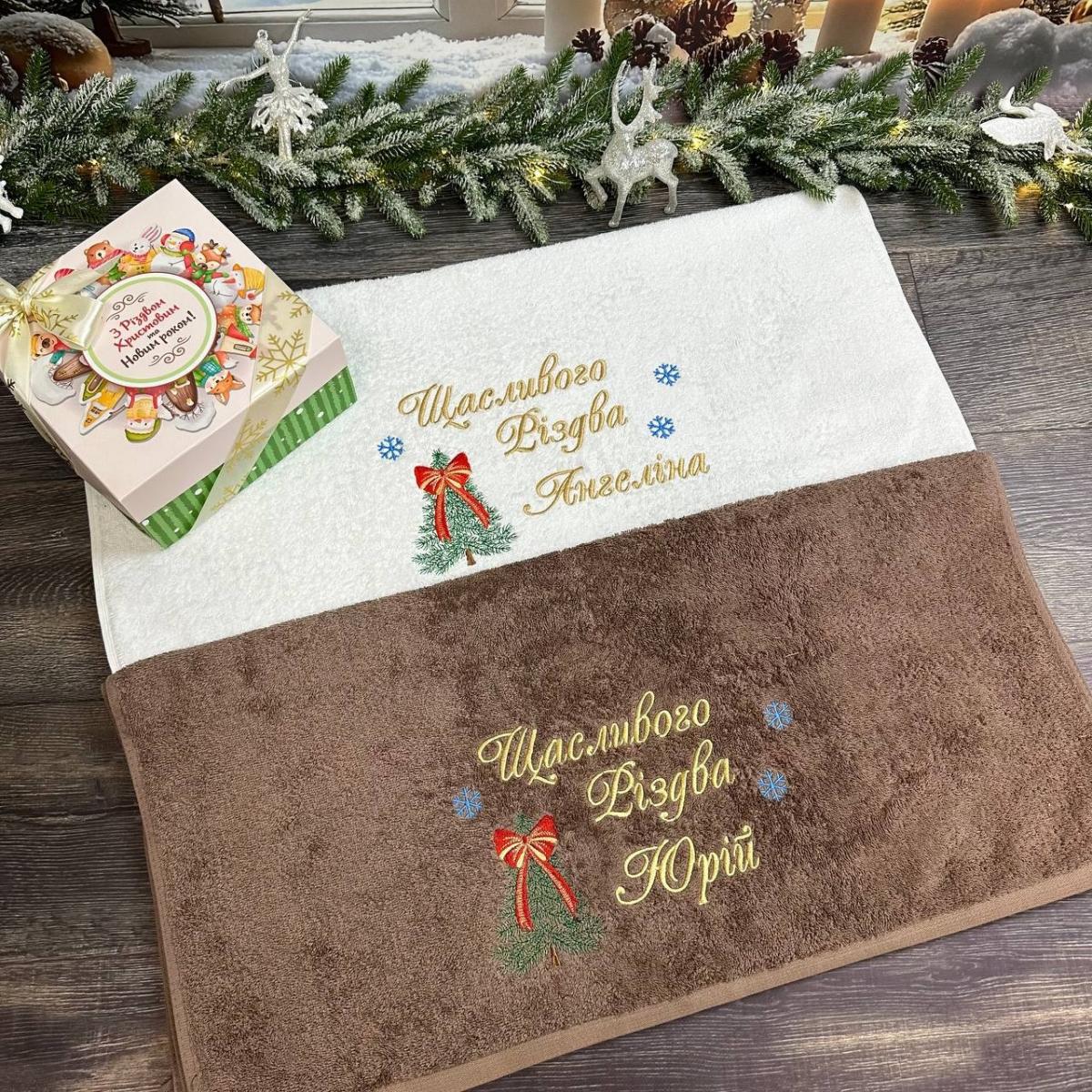 Святкові махрові рушники з персональною вишивкою - теплий і душевний подарунок до Різдва. Натуральна бавовна 100%, м'яка текстура та елегантний різдвяний дизайн створюють відчуття затишку з першого дотику. Ідеально для подарунка близьким або стильного святкового акценту у домі.