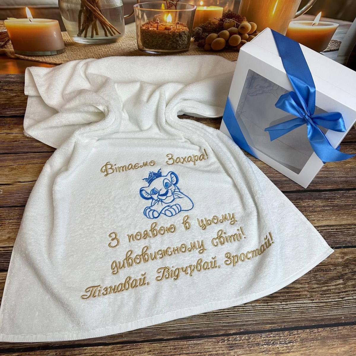 Ніжний бавовняний рушник з чудовими словами вишивки - чудовий подарунок для новонародженого. М'який і безпечний для ніжної шкіри малюка, ідеальний для купання чи пам'ятного презенту.