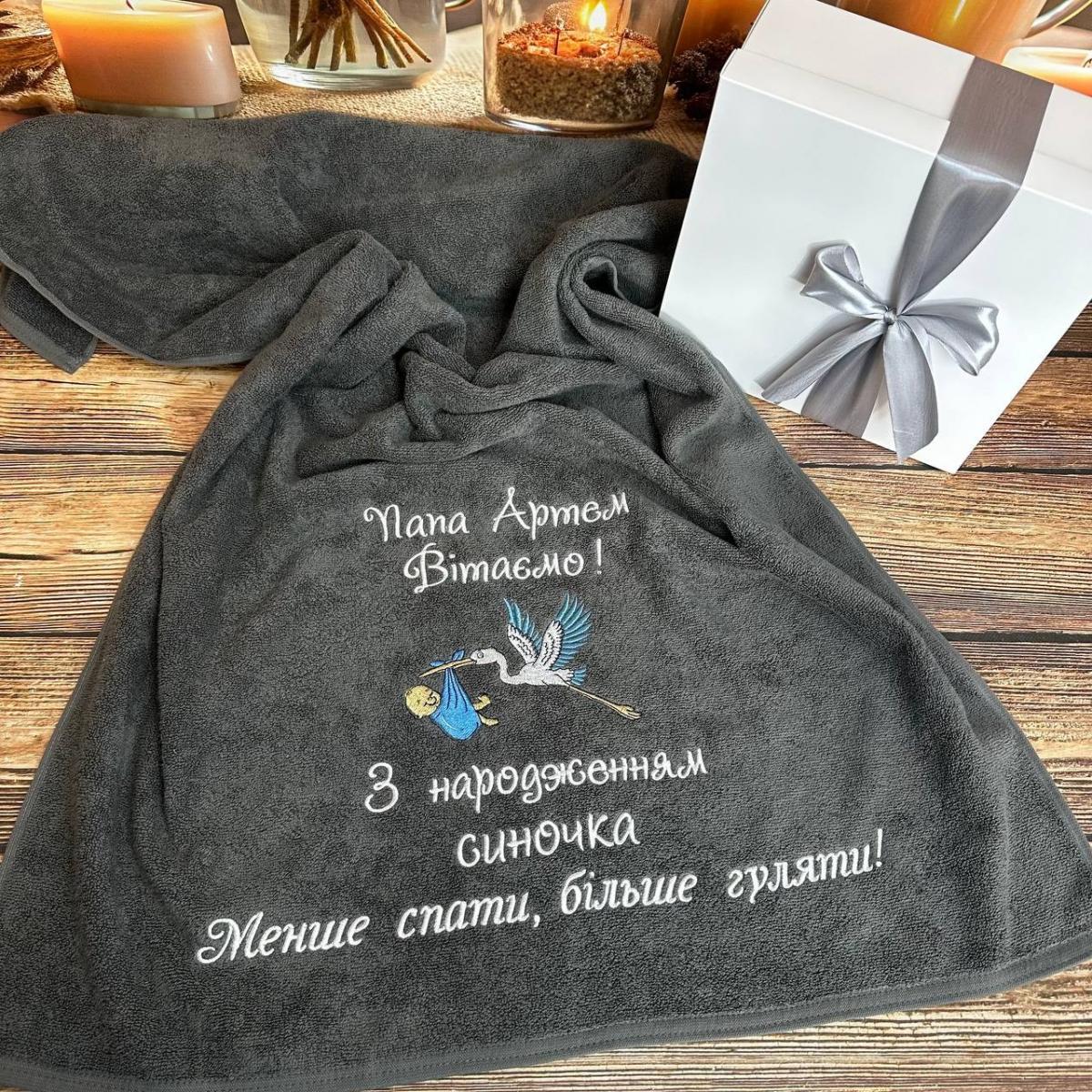 Рушник "З народженням синочка", розмір 70*140 см, щільність 450 г/м2