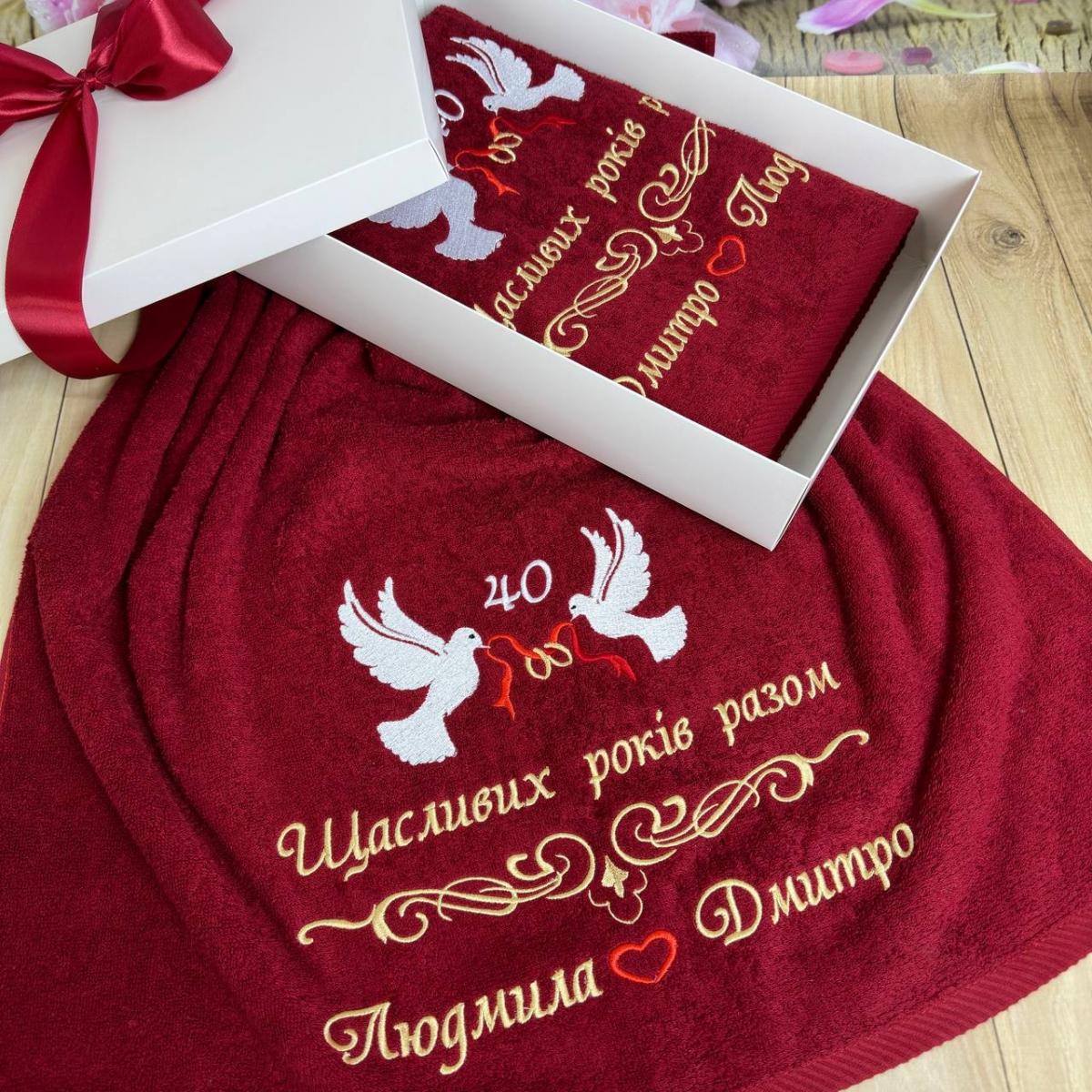 Рушник із річницею весілля на 40 років - символ сорокалітнього ювілею, прикрашений вишивкою, що відзначає довгу та міцну любов пари.