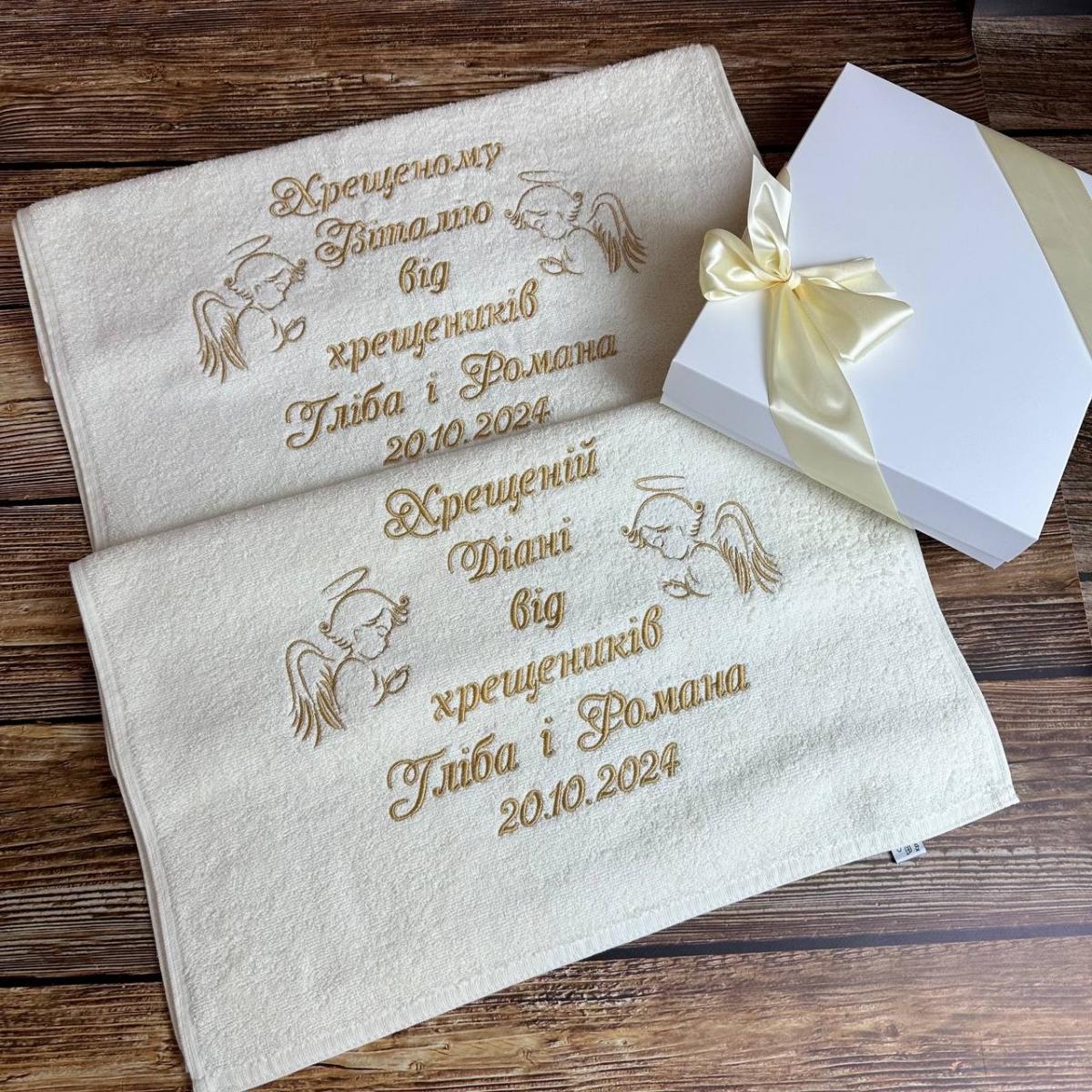 Рушники хрещеним "Від Гліба та Романа", розмір 50*90 см, щільність 400 г/м2