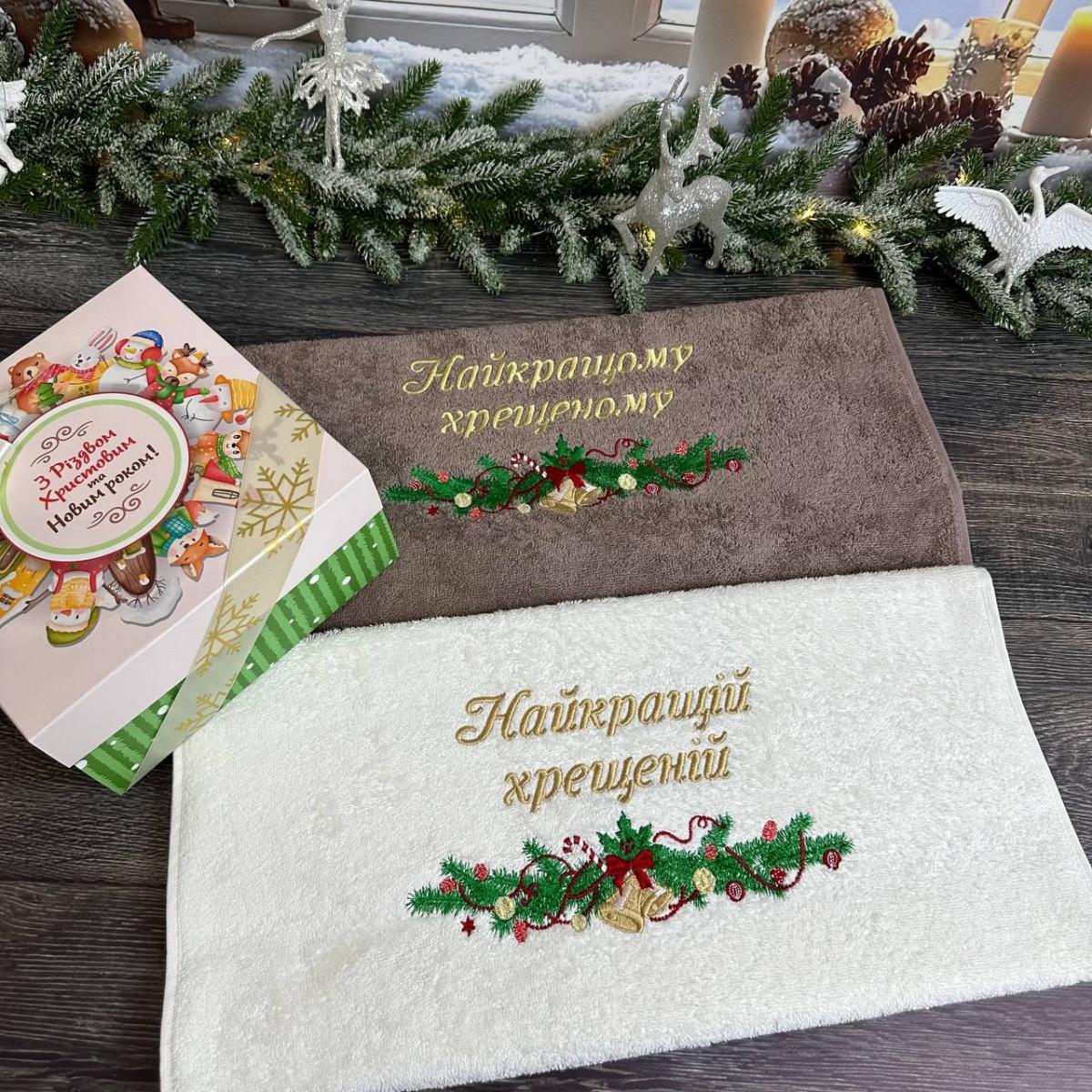 Новорічні махрові рушники із святковою вишивкою - чудовий подарунок для хрещених! М'який, ніжний і стильний текстиль, який дарує тепло та турботу. Ідеальний спосіб привітати зі святами та показати особливу увагу в цей чарівний час.